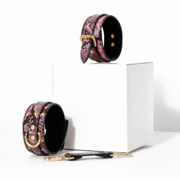 Aesthetic impact: The snakeprint leather is an immediate visual cue that enhances the mood. These cuffs elevate photos, content creation, or simple private moments with a stylish, cohesive look.