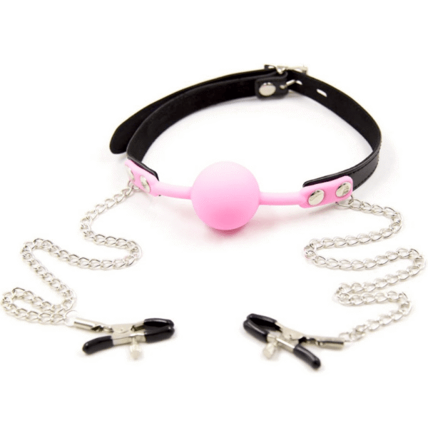 Take control. Submit. Experience the full spectrum of pleasure and sensation with the Pink Gag with Nipple Clamps – the ultimate toy for sensory overload and erotic play.