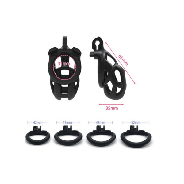 Choose the cage length that best suits your needs: 35mm for a compact fit or 65mm for more coverage. This flexibility allows users to tailor their chastity experience for maximum comfort and effectiveness. - Customizable Fit with Four Ring Sizes