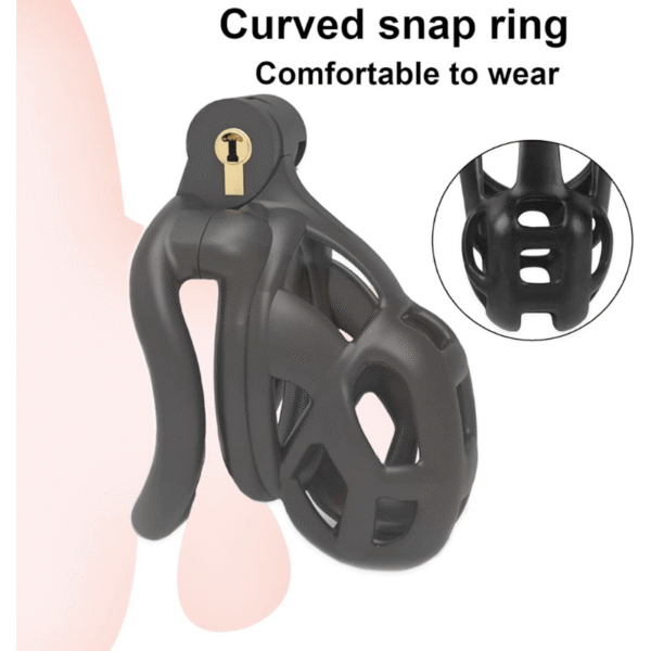 Constructed from medical-grade resin and ABS, the cage is hypoallergenic, smooth, and resistant to wear and tear. Its lightweight design ensures comfort during long-term wear while maintaining the security expected from a premium chastity device. - Classic Black Finish