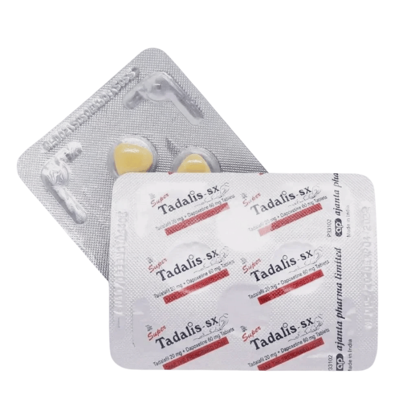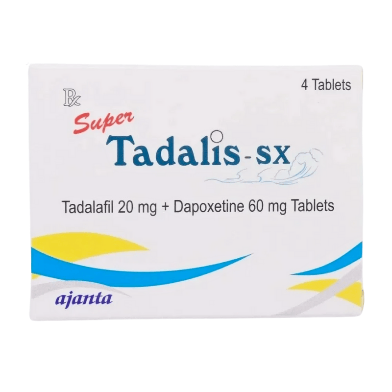 Super Tadalis SX is a combination pharmaceutical product designed for men who have been medically evaluated and prescribed treatment for erectile dysfunction (ED) and premature ejaculation (PE). The formulation contains two active ingredients—tadalafil and dapoxetine—which act through different physiological pathways. Super Tadalis SX typically comes in a compact blister pack containing 4 pills, . Super Tadalis SX is manufactured as a generic combination tablet.