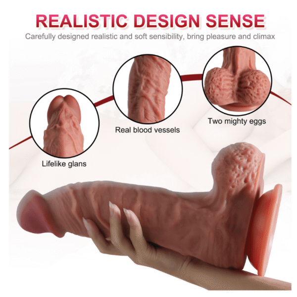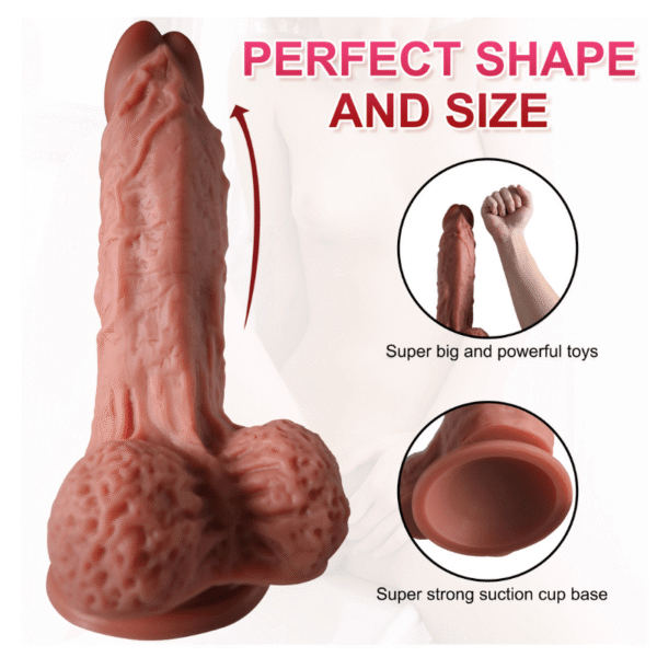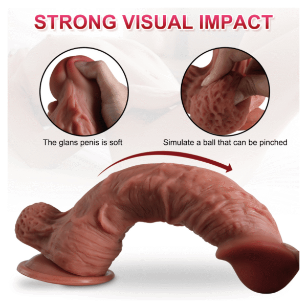 Grace: “In a harness and in the shower, this dildo is extremely effective. The suction cup is solid, and the weight gives it a realistic pull. The dual-layer silicone provides a strong but not harsh impact, especially during deeper thrusts.”